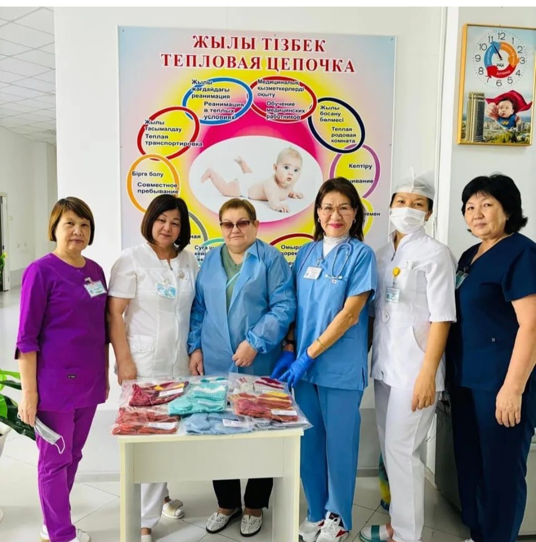 Позже, в марте 2023 года, в Уральске открылся филиал клуба «Нити Добра». Вначале нас было всего три человека, но мы уже активно вязали вещи для недоношенных малышей и отправляли их в Алматы. Со временем работа расширялась, и я стала координатором этого филиала. Сейчас наш клуб помогает родильным домам Уральска и перинатальному центру города Есик.