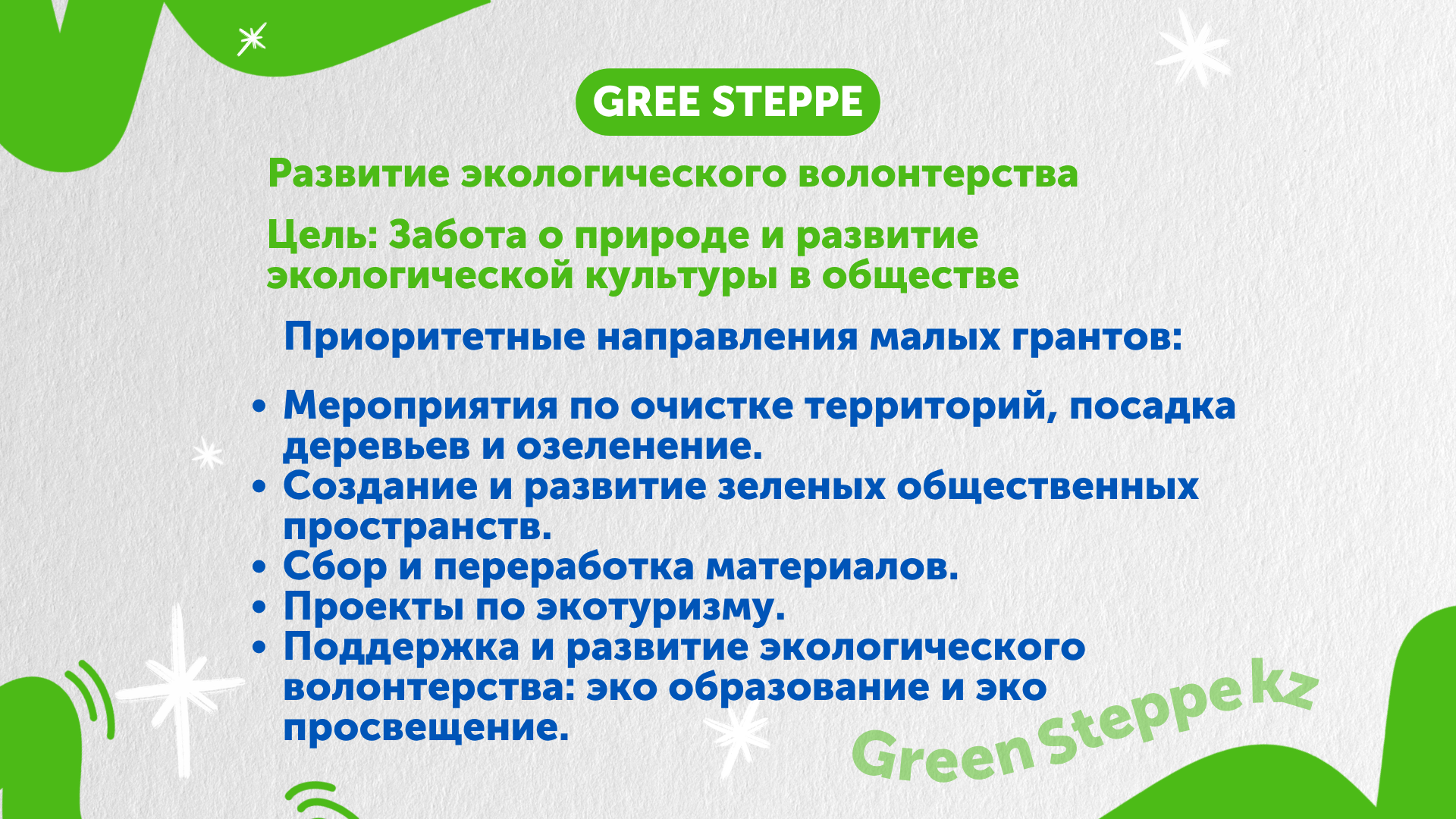 Почта для заявок: greensteppe.kz@gmail.com